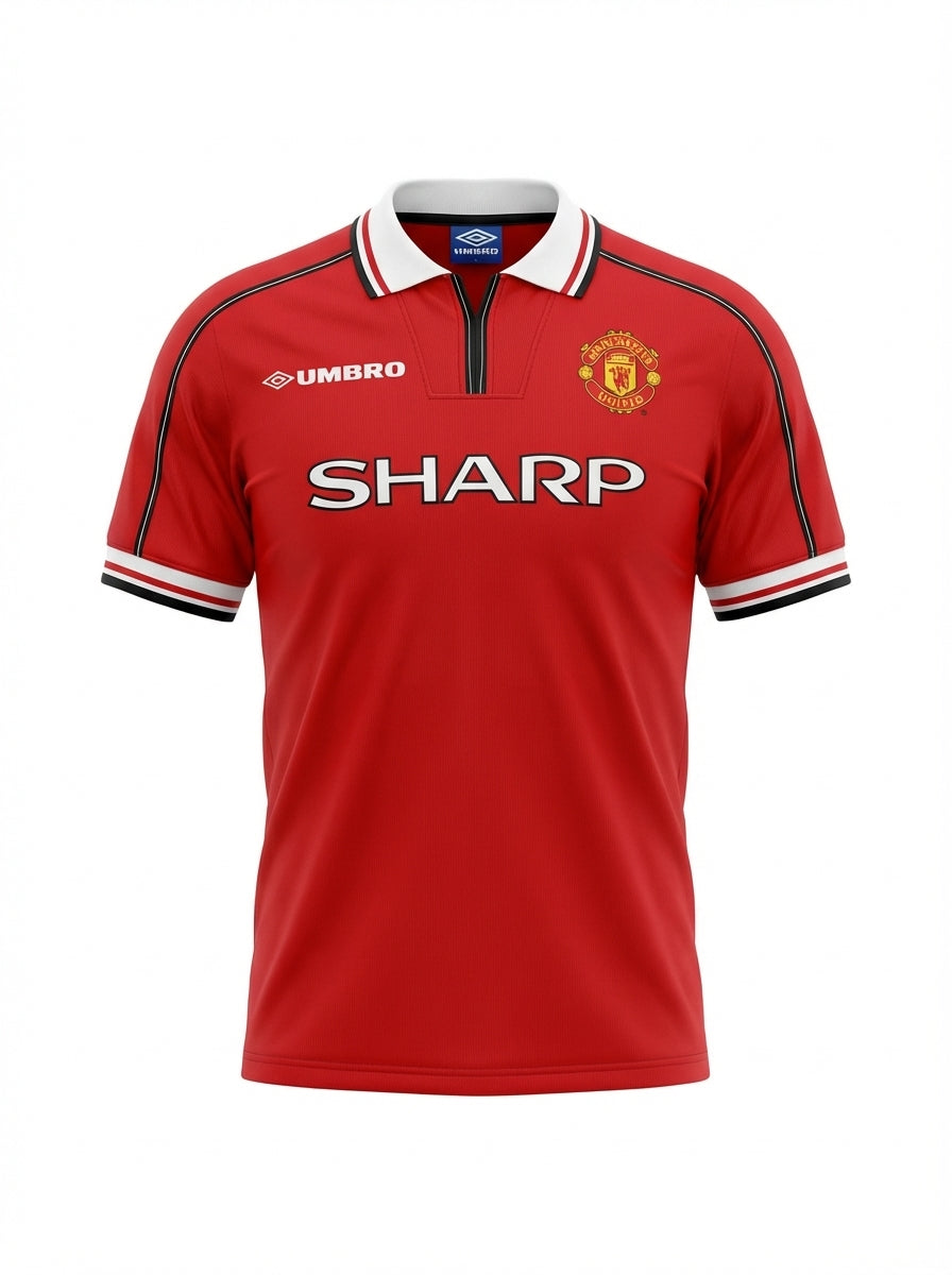 Relive one of the most legendary seasons in football history with the Manchester United 1998/99 Retro Home Jersey. Worn during the iconic treble-winning campaign, this jersey represents the unforgettable season when United conquered the Premier League, FA Cup, and UEFA Champions League.